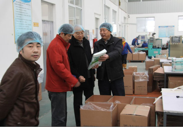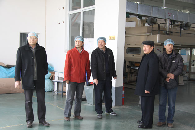 楊昌福總經(jīng)理與曲師大領(lǐng)導(dǎo)專家教授在制袋車間考察